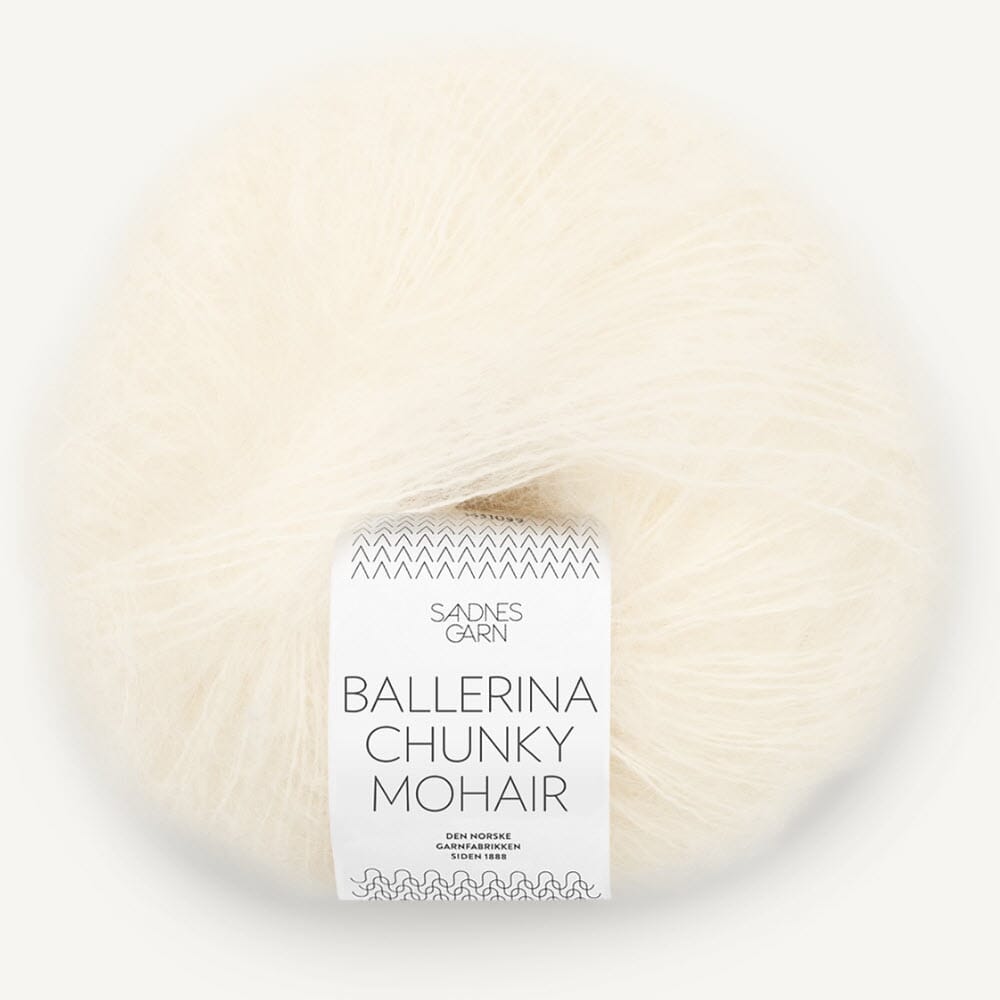 BALLERINA CHUNKY MOHAIR er et klassisk mohairgarn i vakre farger. Garnet har en kombinasjon av mohair og ull som gir det karakteristiske langhårede mohair uttrykket. Strikk genser, jakke eller andre plagg i enkel eller dobbel tråd i dette lette, luftige garnet.
