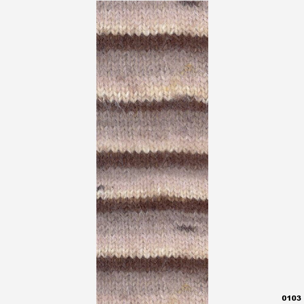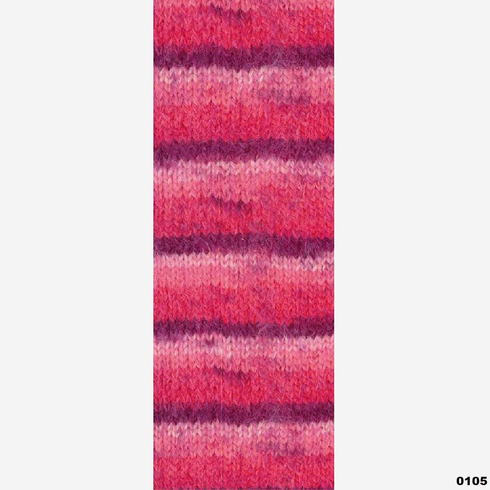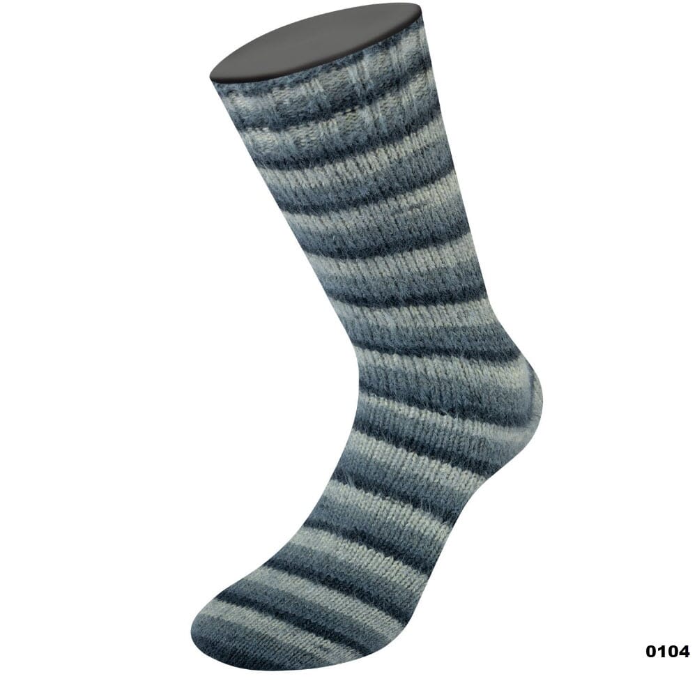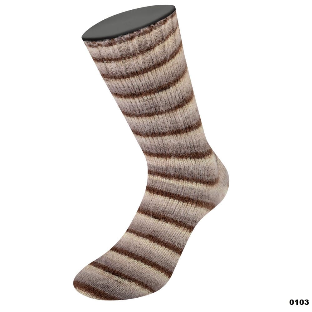 Mykt og fluffy garn i merinoull i fargerike striper med nylonforsterkning som gjør det perfekt å strikke sokker av.