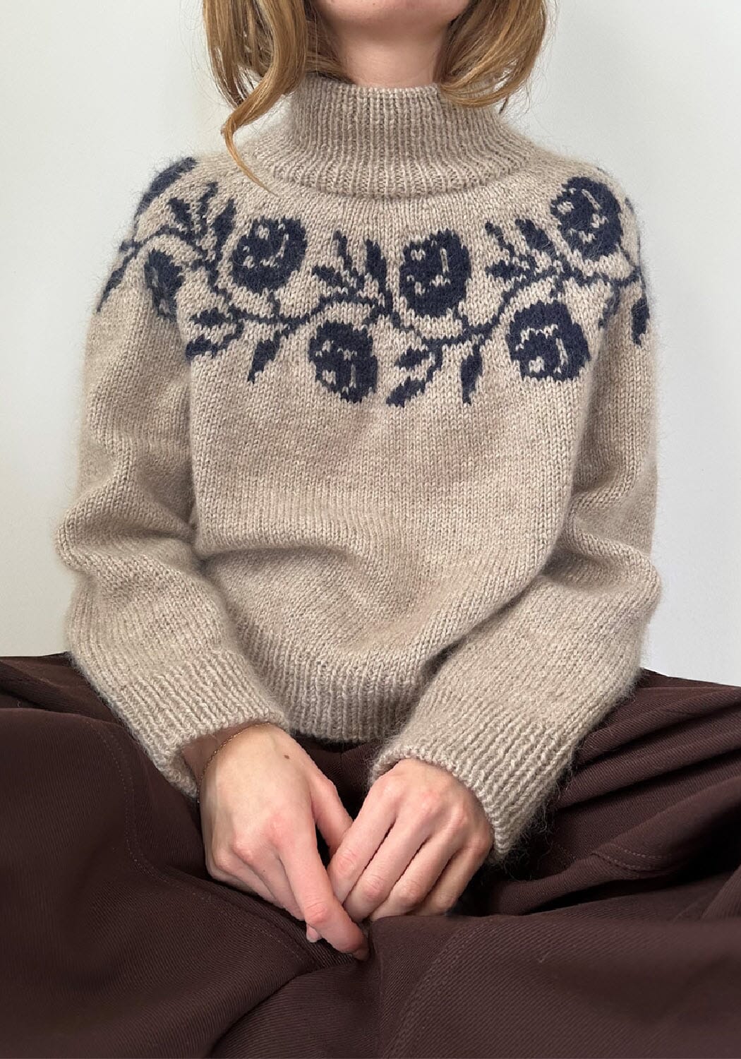 Du finner strikkepakke på Rosie Yoke Sweater, se link lenger ned.