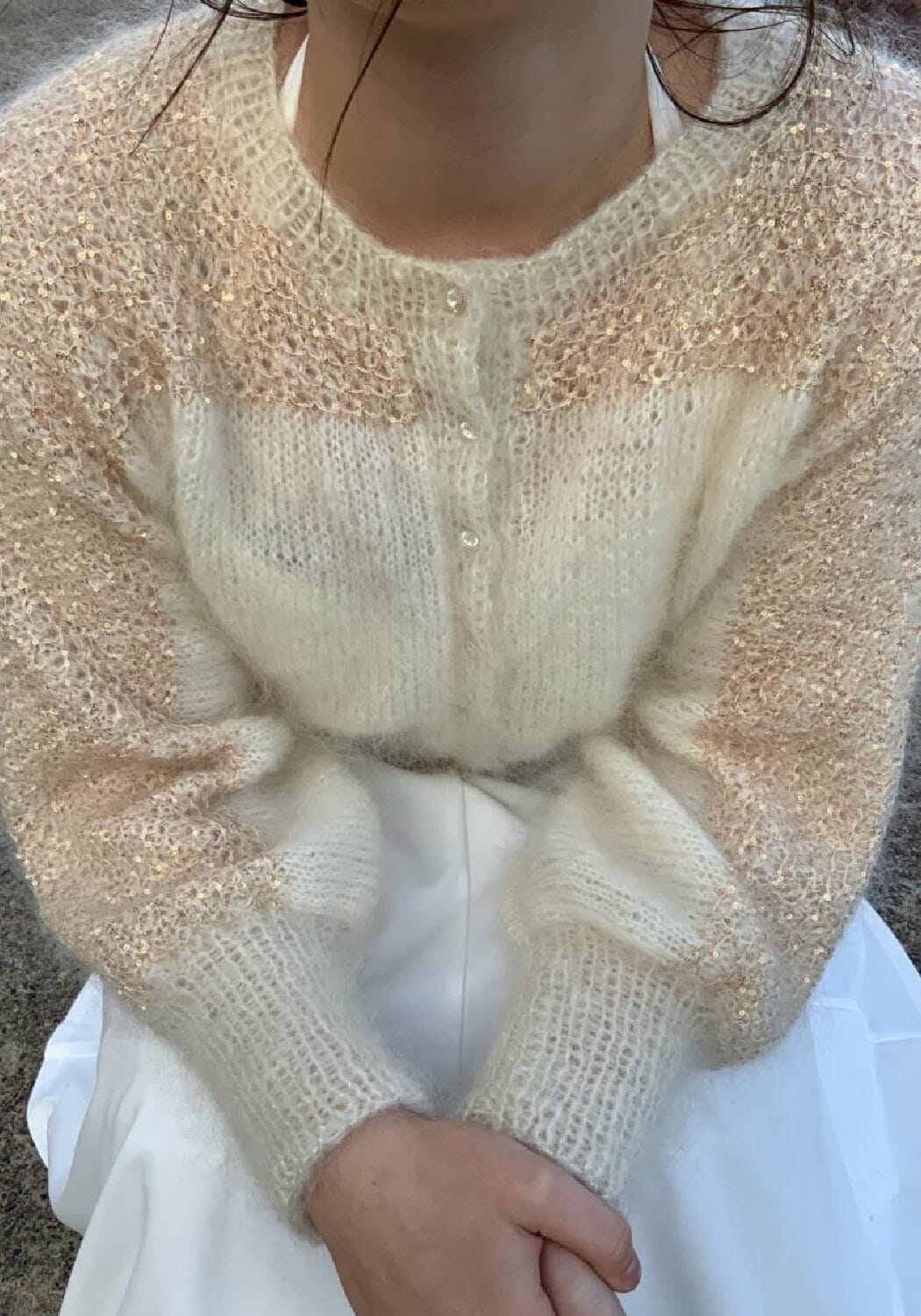 Jakken strikkes frem og tilbake. Forstykkene strikkes først, hver for seg, og det legges opp masker til ermet i den ene siden av forstykket. Fra nakken strikkes videre med bakstykket og begge ermene, til slutt felles maskene til ermene av, og resten av bakstykket strikkes ferdig. Gullbordmønsteret strikkes med løftemasker og én kvalitet om gangen; vekselvis 2 pinner med Bella og 2 pinner med Paillettes.