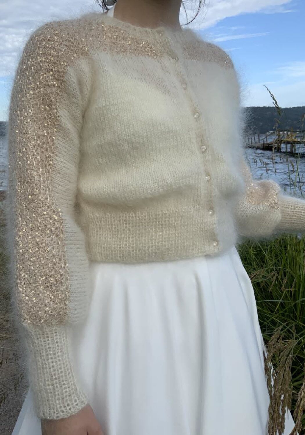- Strikkeoppskrift på Frøken Vrangs Bryllupsjakke (sendes sammen med garn i posten, ikke digitalt).