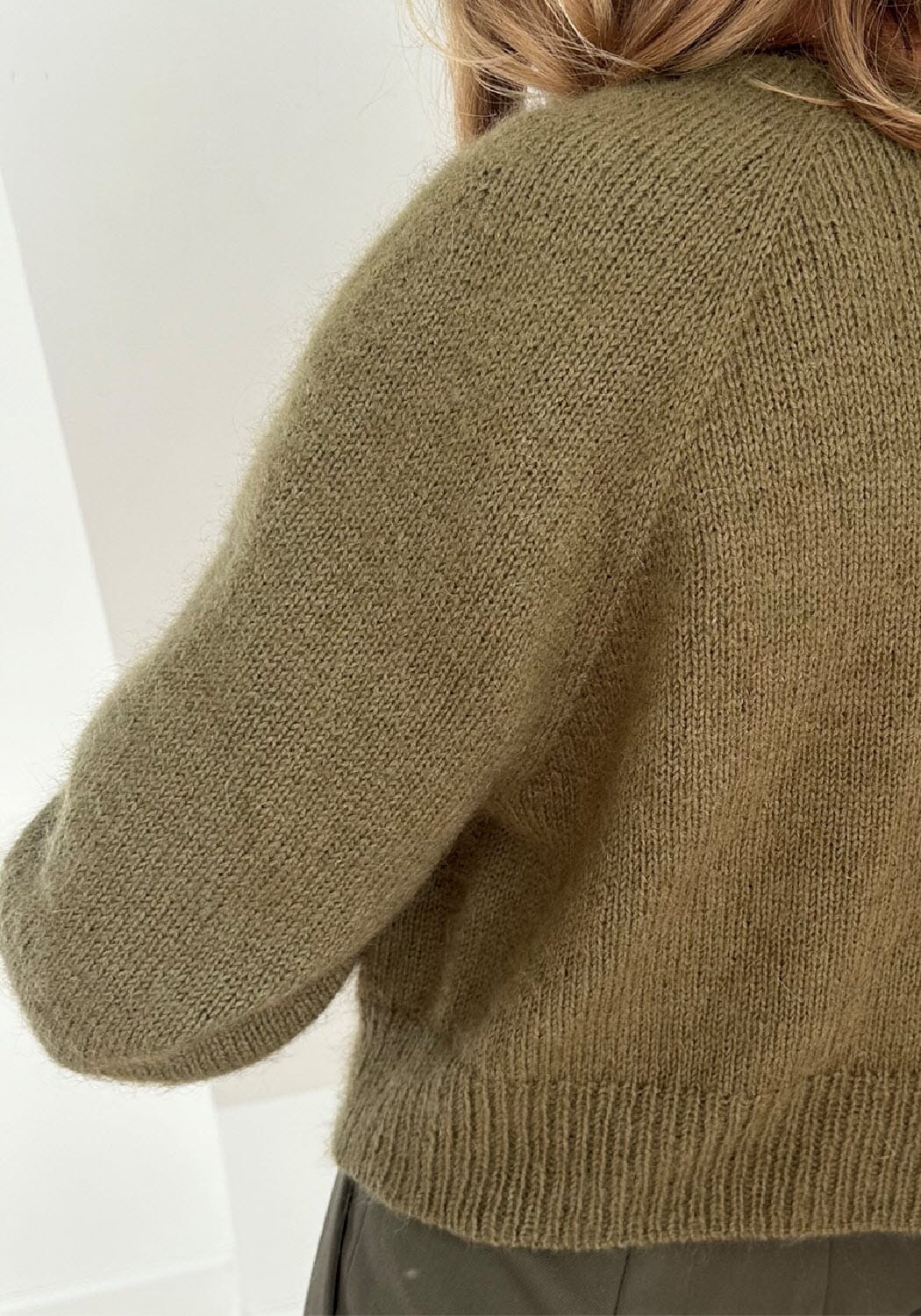 Darcy Cardigan har en fasong som passer godt til både bukser og kjole. Darcy Cardigan er en raglancardigan med ekstra detaljer på skulderen som gir en fin passform. Den har en dyp raglan og ermefellingene er plassert på oversiden av ermet. Dette gir en skulpturell silhuett til ermet. Den strikkes frem og tilbake, ovenfra og ned. Det strikkes vendepinner øverst for å danne halsutringningens fasong, og samtidig strikkes raglanøkninger samt skulderøkninger midt på ermet. Ermene strikkes rundt. Forkantene og halskanten strikkes til slutt.