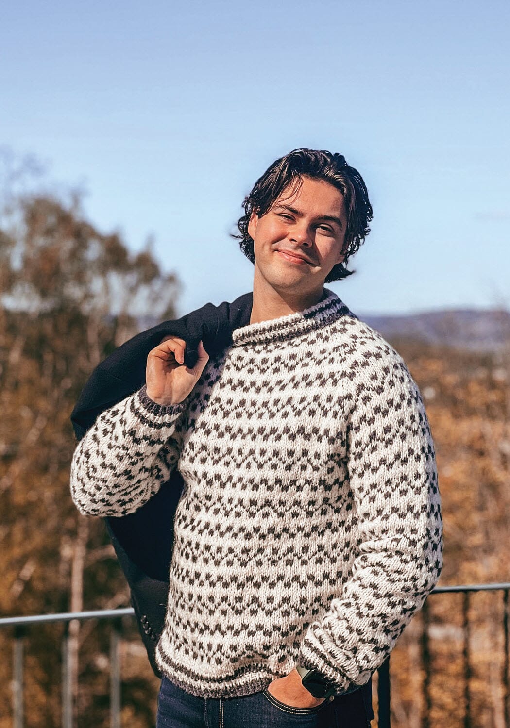 En myk og deilig islender til herre strikket i garnet Deilig fra KnitNorway.