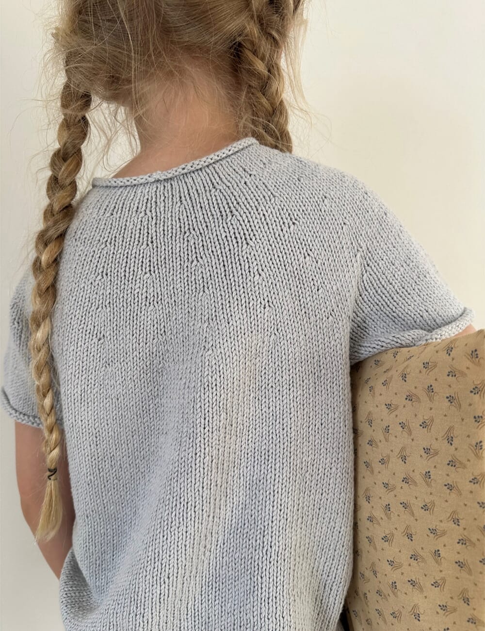 Plain Yoke Tee Junior - til barn i størrelse 2-12 år. Toppen strikkes i garnet Line fra Sandnes Garn som er perfekt til sommeren! Design: Lene Holme Samsøe.