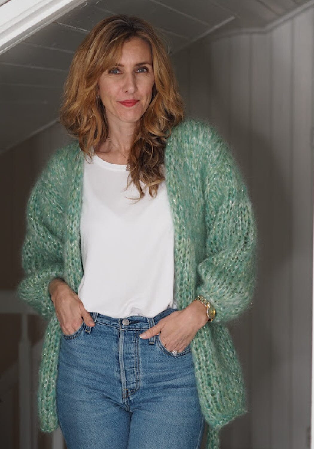 Ønsker du ikke "bling" i jakken, så kan glittertrådene sløyfes, det har ingen betydning for strikkefastheten.