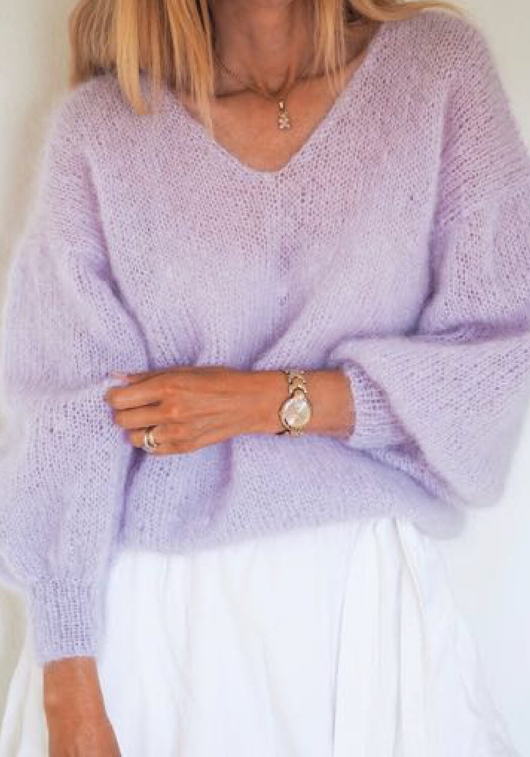 Bella fra Permin 75 % kid mohair, 20% ull, 5 % polyamid, 50 g = 145 m.