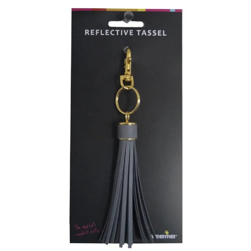 Refleks tassel henger i en sølvfarget karabinkrok som er enkel å feste i glidelås eller rundt remmer på jakken, vesken, sekken eller barnevognen.
